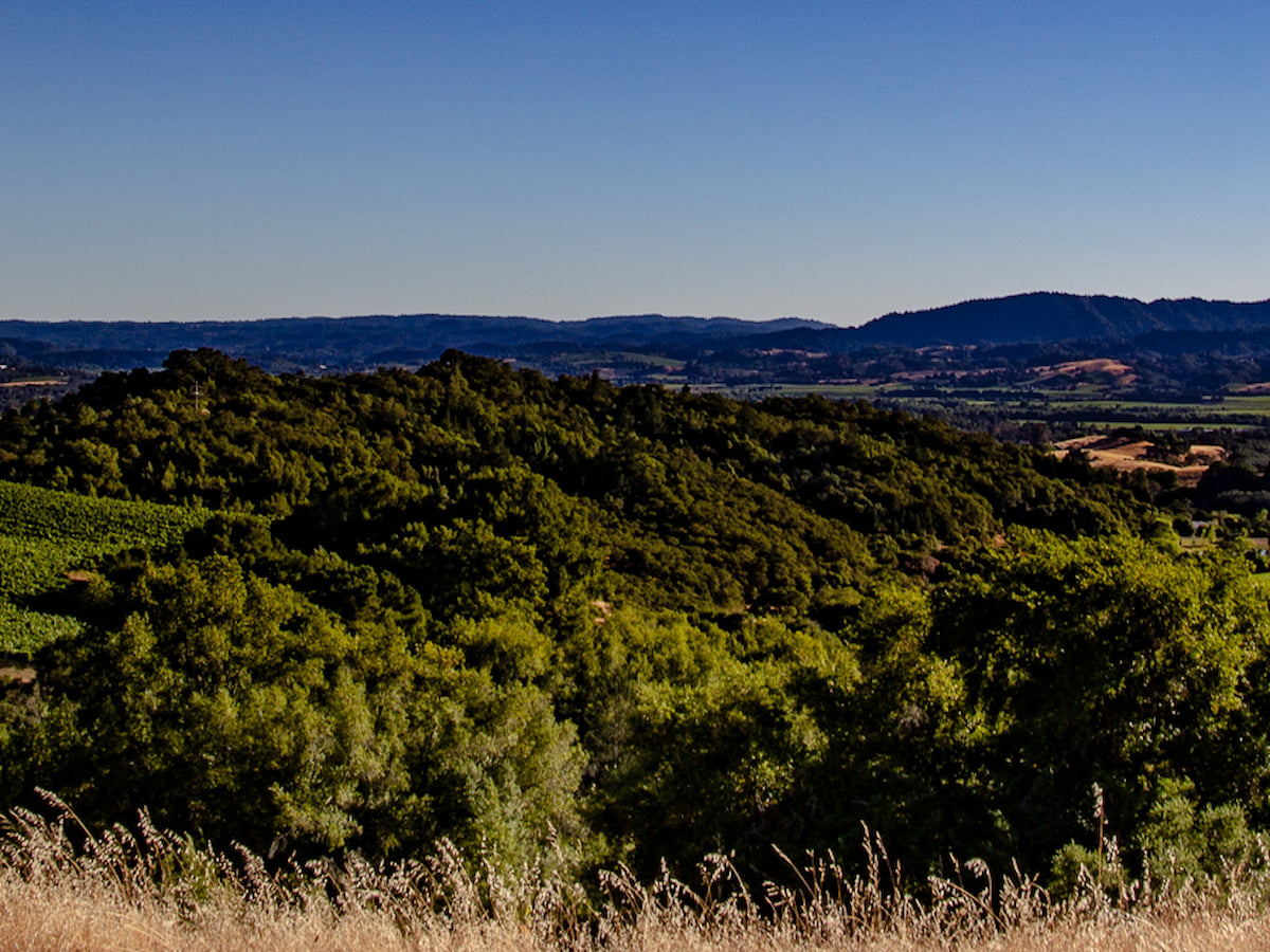 This appellation stretches east from Windsor on U.S. 101 into the rolling hills between Russian River Valley and Alexander Valley. Vineyards here sit mostly on slopes and benches at elevations up to about 1,600 feet, catching more sun than lower vineyards but still benefiting from breezes that moderate heat.