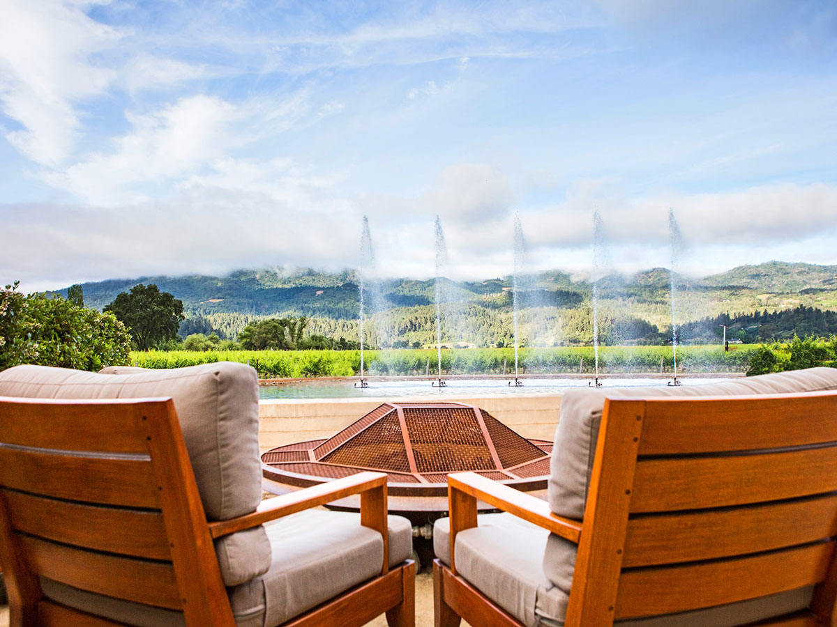 Set along Highway 29 in Rutherford, Alpha Omega feels like a pause button in the middle of Napa’s busiest stretch. Once you step through the gates, the traffic fades away and you’re surrounded by fountains, gardens, and calm. We love how intentional it feels. The wines are clearly crafted with care and ambition, but the vibe is warm and approachable, making it a favorite for both first-time visitors and seasoned Napa regulars.