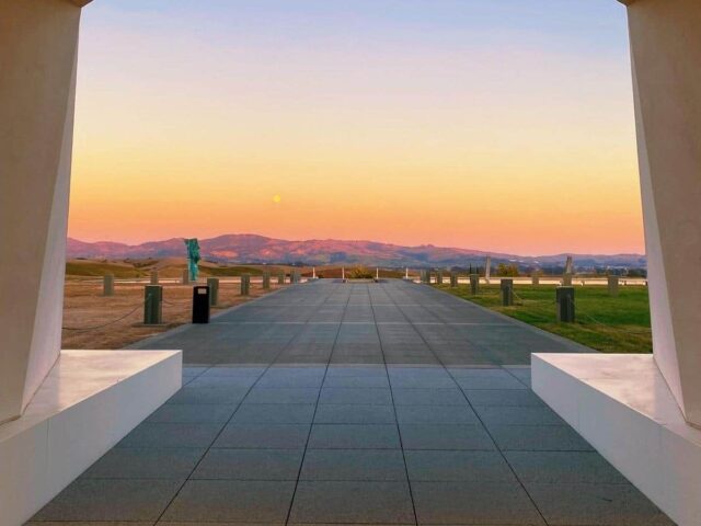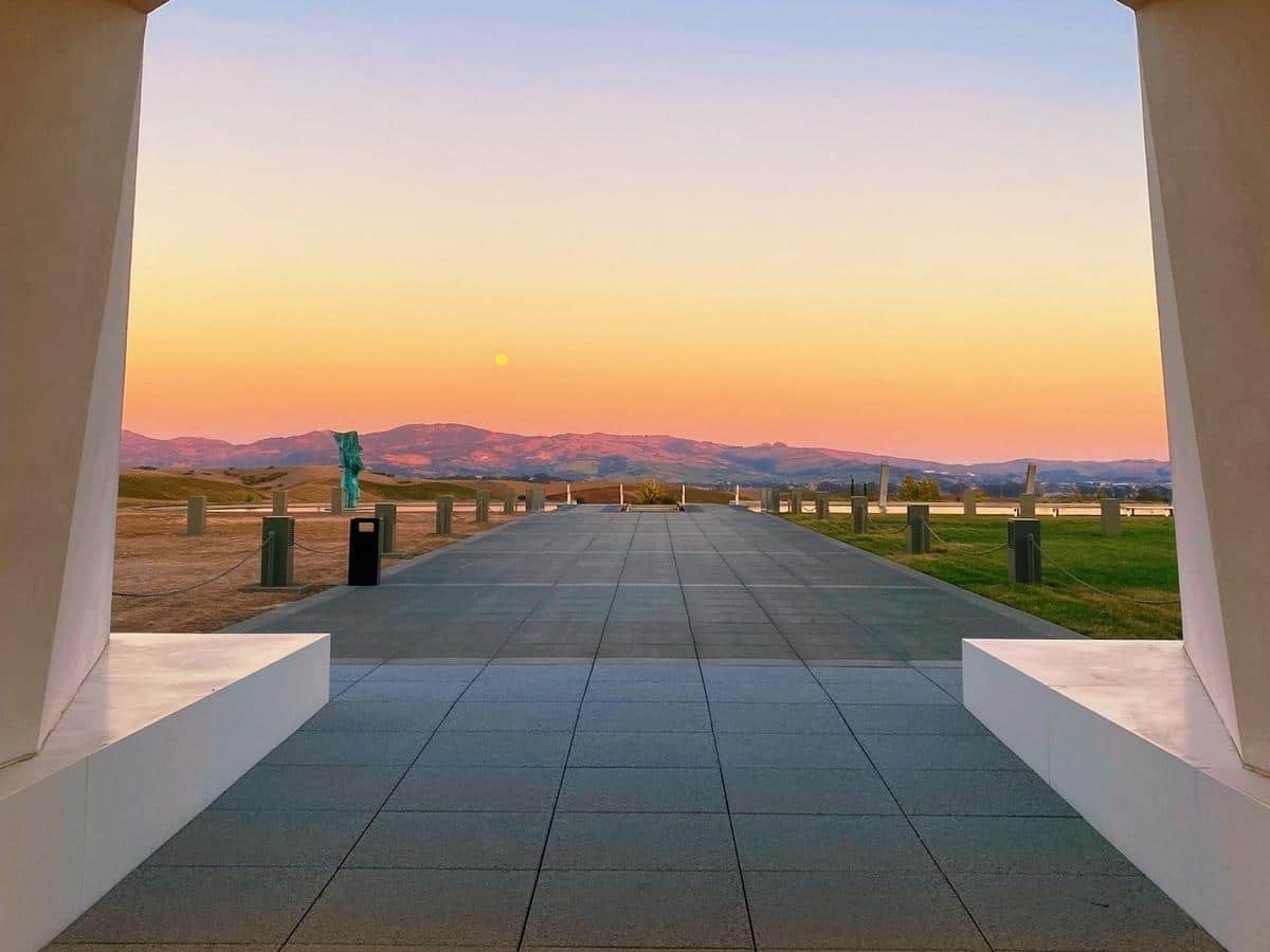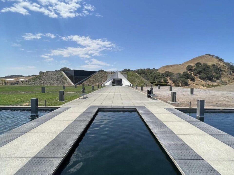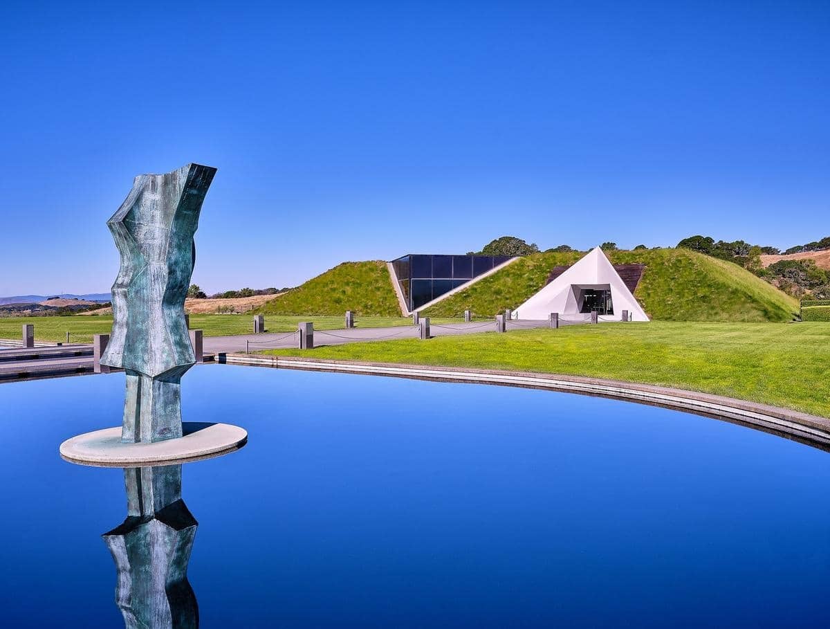 Artesa is modern, clean-lined, and quietly dramatic. The winery is designed to blend into the hill (so from certain angles it almost disappears), and the approach feels like a little procession with steps, water, sky, and vineyards. The whole place reads like architecture you can drink at.